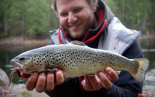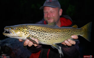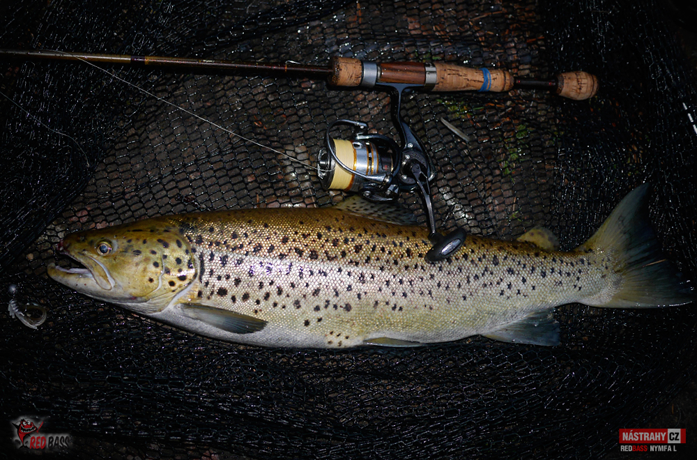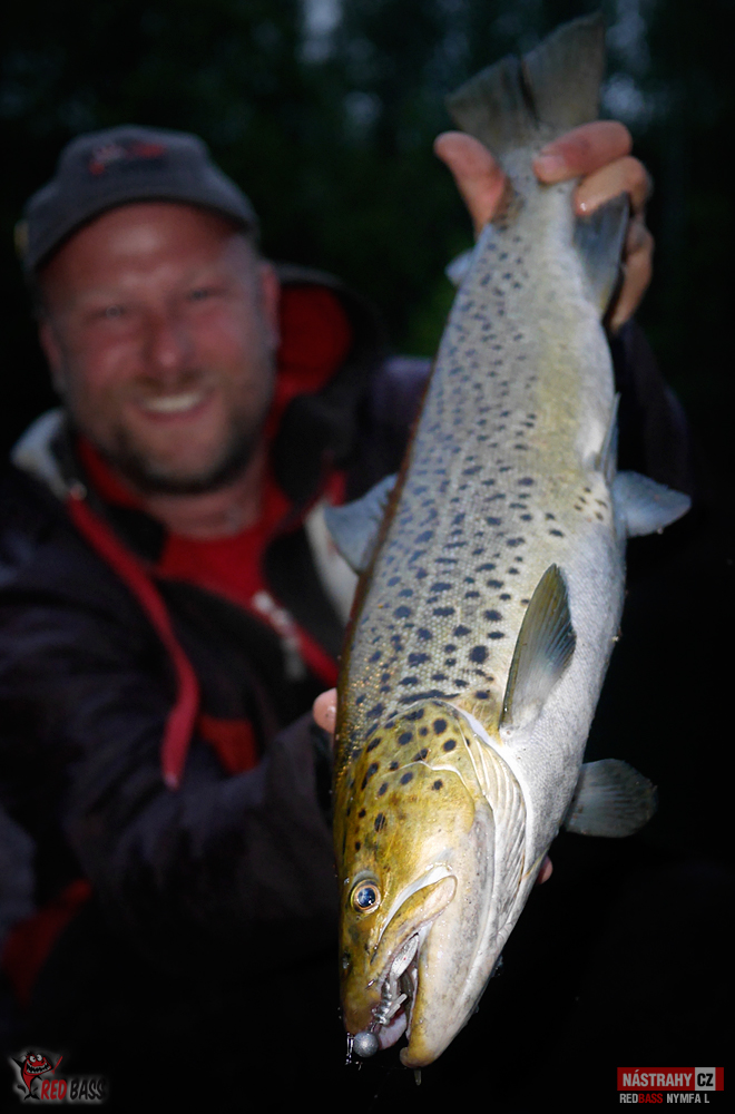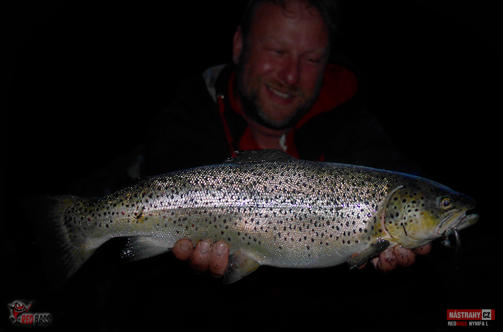 Podvečer, na který se nezapomíná! Velká řeka, extrémní proud a hloubka okolo 10 metrů. Poté, co jsem se s 10g hlavičkou dokázal dostat s nymfou ke dnu se mi podařily tři nádherné ryby. Pstruh 61 cm a 60 cm. Jeden podobný mi spadl. Bylo potřeba nahodit co nejdále proti proudu, když byla nástraha na mé úrovni, párkrát jsem škrtl o dno a byl tam. Neskutečný souboj a téměř jsem brečel radostí. Zajímavé, že v té hloubce a šeru fungovala nejlépe hnědá nymfa. Skoro jak u candátů :-)