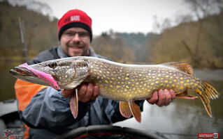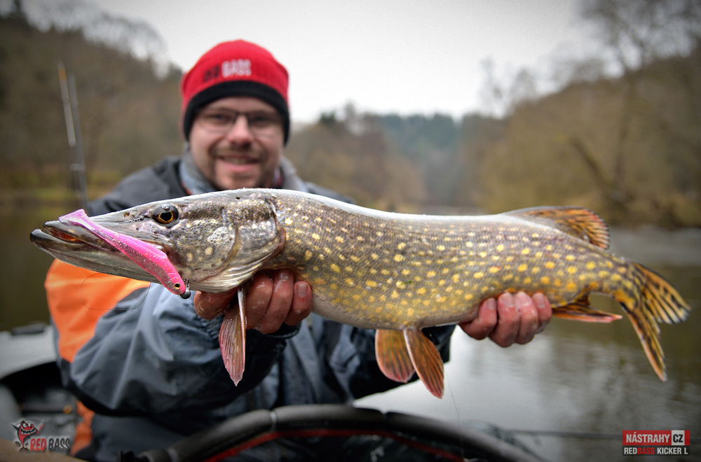 Říční predátoři posledních dní. Nějací menší candáti, boleni a štiky a jeden zapomenutý okoun. Jedna štika byla slušnější tuším 72 cm - brácha, kterej nebyl docela dlouho na rybách, z ní měl upřímnou radost. Nejvíc teď chytáme na Kickera. Ten se opravdu povedl :-)