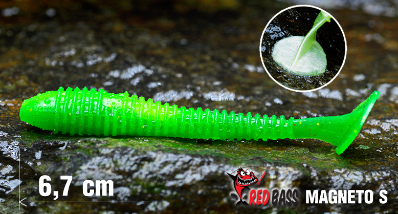 TOP NÁSTRAHA PRO LOV PROPADEM! MODELY GLOW VE TMĚ SVÍTÍ! Mimořádně měkký ripper s příčným žebrováním pro přídavné vibrace a tenké tělo, který je vybavený super tenkým ocáskem pro extrémně dobrý chod. Účinná zbraň na všechny velké dravé ryby z extraměkkého materiálu! Nástraha MAGNETO se vyznačuje mimořádně dobrým chodem i při velmi pomalém tažení a při propadu. Chod byl docílen jednak zeslabením tělíčka, které je opticky zvětšeno žebrováním, které navíc při tažení jemně vibruje a velmi slabým ocáskem a kopýtkem. Díky extraměkkému materiálu ryba nástrahu nevyplivne a dále ji polyká! To vše a propracované barevné provedení je pro dravce magnetem, kteří naše MAGNETO nenechají bez povšimnutí proplout!