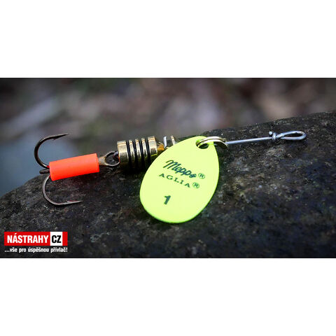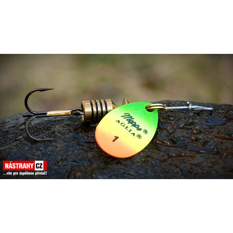 Legendární rotační třpytka z Francie. Model Aglia se vyznačuje širokým listem, díky kterému je možno vést rotačku pomaleji (v mělké vodě, po proudu apod.) a přitom vydává silné vibrace.
