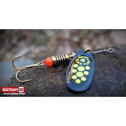 Black Fury je jedna z nejlepších rotaček, kterou firma Mepps vytvořila. Speciálně navržený list se otáčí blíže k tělíčku, než tomu je u klasické Aglie. Díky tomu jste schopni efektivně prochytávat jak mělké partie, tak středně hluboké vody.