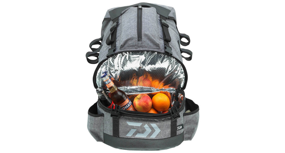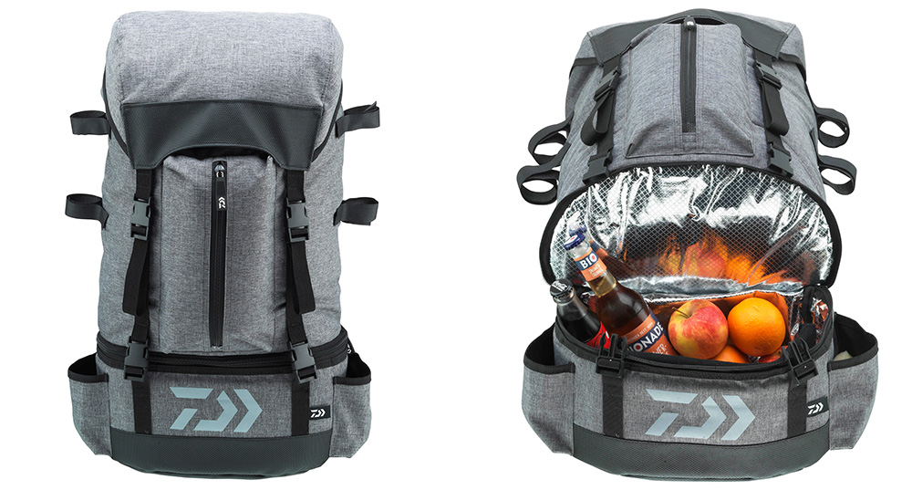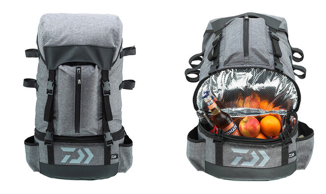 Extra velký batoh s objem 30l a chladicí přihrádkou na dně. Obě boční kapsy bezpečně pojmou sestavené pruty. Síťovina na zadní straně zajišťuje dobrou cirkulaci vzduchu a polstrované ramenní popruhy nabízejí vynikající komfort při nošení. Samostatná malá přední kapsa snadno pojme drobné příslušenství.