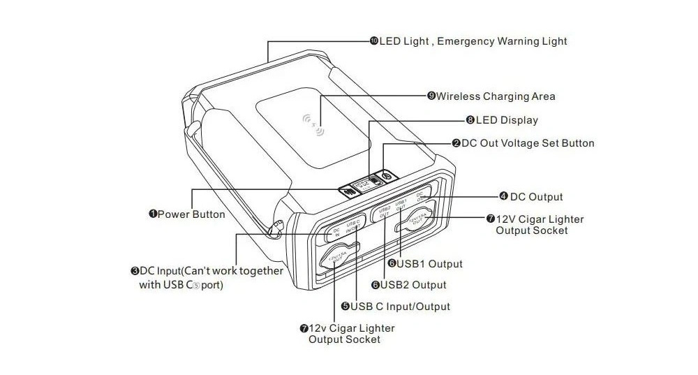 Powerbanka disponuje celkem sedmi výstupy, abyste mohli současně nabíjet více zařízení. USB-C i USB-A výstupy jsou ideální pro rychlé nabíjení moderních zařízení díky podpoře PD a QC protokolu (až 60W). Cigaretovou zásuvku oceníte při použití přenosných elektronických zařízení ve vozidle a DC jack je praktický pro nabíjení notebooků.