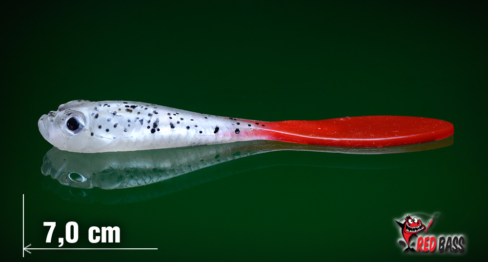 Extraměkký smáček se zploštělým ocáskem, kterému znalci říkají "bobřík". Nástraha zvláště vhodná k lovu u dna, který oceňují candáti a okouni - někteří rybáři po vyzkoušení už okouny ani na jiné smáčky lovit nechtějí! Smáček má díky zadnímu "pádlu" velkou tendenci při drobném pohybu špičkou prutu plavat do strany i při vertikálním vedení! Ručně vyráběný extra měkký špičkový smáček, který ryba jen tak "nevyplivne" a díky použitému mimořádně měkkému materiálu se jej záběru snaží polknout! Vynikající i pro lov DROPSHOTEM, TOP s čeburaškami REDBASS! Díky propracovaným povrchovým detailům těla (šupiny, skřelové oblouky, rybí tlama apod.), 3D očím, přírodě identickým a dráždivým barvám a vyzkoušenému tvaru by měla být nedílnou součástí vaší výbavy! ÚSPĚŠNĚ VYZKOUŠENO NA RYBÁCH!