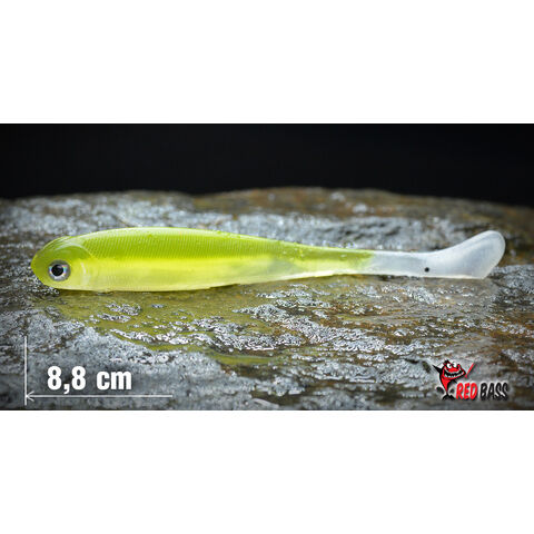 Smáček s posílenou akcí celé části těla, nejuniverzálnější použití a nejsnazší vedení při začátcích "smáčkování". Vynikající i pro techniky DROP SHOT či TEXAS RIG. TOP s čeburaškami REDBASS. Klasický tvar, se kterým je možno použít mnoho způsobů vedení ve vodě. Díky propracovaným povrchovým detailům těla (šupiny, skřelové oblouky, rybí tlama apod.), 3D očím, přírodním i dráždivým barvám a vyzkoušenému tvaru je pro ryby neodolatelný. Ručně vyráběný extra měkký špičkový smáček, který ryba jen tak "nevyplivne" a díky použitému mimořádně měkkému materiálu se jej záběru snaží polknout! I proto by měl být nedílnou součástí vaší výbavy.