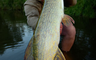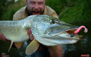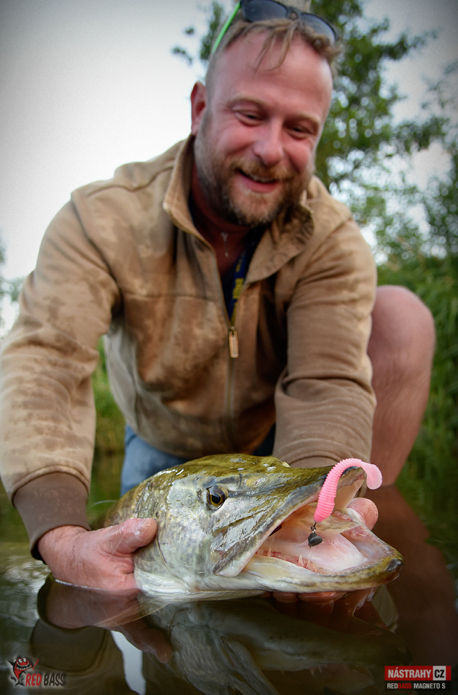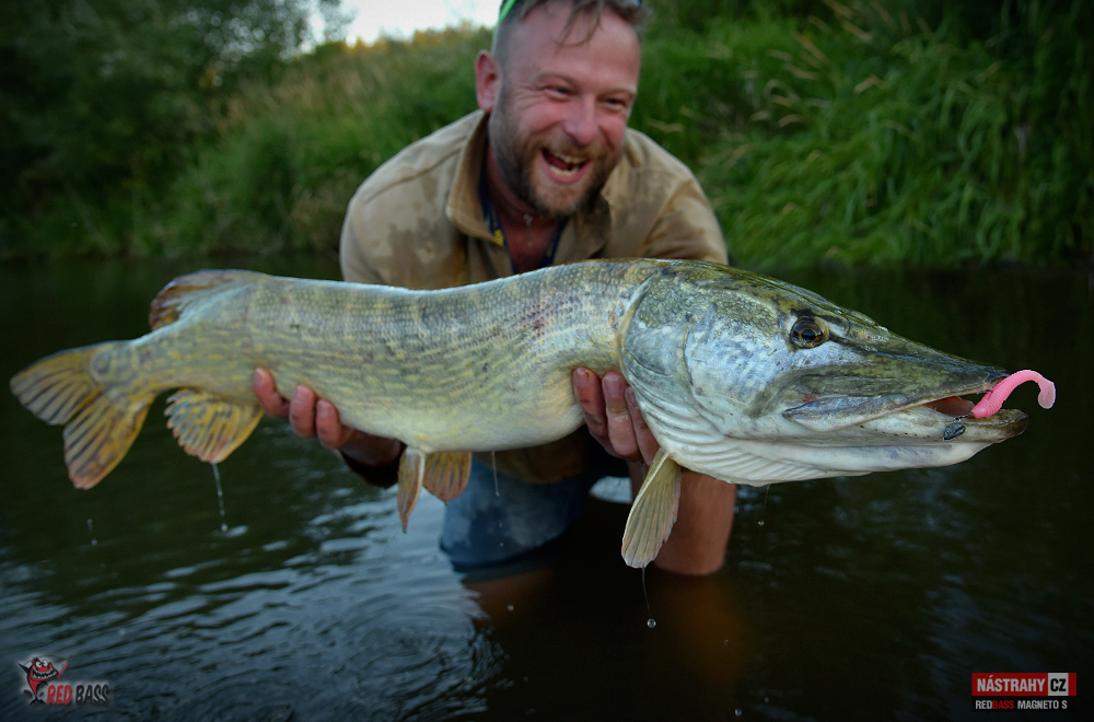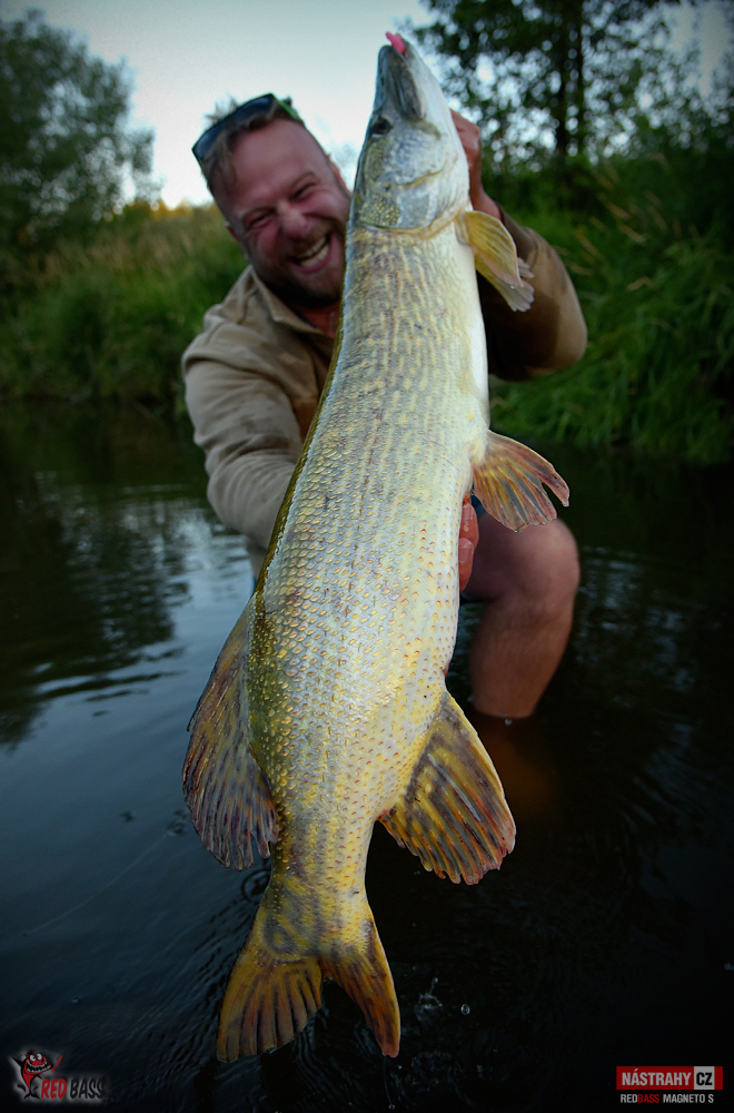 Měl jsem dneska hodně dobrej den. Ráno jsem si přivstal, abych cestou na JčÚS do Boršova prubnul chvíli nějaké místní dravce. Nějakou chvíli jsem zkoušel candáty a štiky, ovšem ani záběr. Tak jsem si řekl, že zkusím alespoň nějakého okouna a pojedu. První hod růžovákem, klep a začalo pomalé přetahování. Napřed jsem odhadoval candáta, pak kapra "za sako". Po 10 minutách jsem začal tušit, že to bude něco jiného a po dalších cca 5 jsem ji zahlédl. Následující minuty jsem byl na infarkt. Kdyby to povolilo na začátku, byl bych relativně v klidu. Ale jak tu rybu zahlídneš, tak už to chceš dotáhnout. Zdolával jsem pak stylem jako když jde zloděj po špičkách kolem spícího hlídače. Potichoučku, pomaličku, opatrně... Do mého legračního podběráku jsem ji dostal až na šestý pokus. Vždy začala uhýbat a se šňůrou 0,06 mm a návazcem FC 0,16 jsem moc prostoru neměl. Samozřejmě OOOBROVSKÁ klika bylo to, že to měla v "zobáku" a vlasec vedl za "šavlí", takže mi to neukousla. Po změření mě málem omyli - 105 cm, což je moje největší štika v životě. Další obrovské štěstí bylo, že kousek ode mě byl rybář, který navíc uměl fotit a nacvakal mi pár fotek. Kdyby tam nebyl, měl bych leda tu z podběráku. Takovou drzost, že bych povolal bráchu 50 km daleko, fakt nemám :-DDD Zdůrazňovat, že jsem ji pustil, snad ani nemusím. Vím, kde je a třeba se za rok zas potkáme!