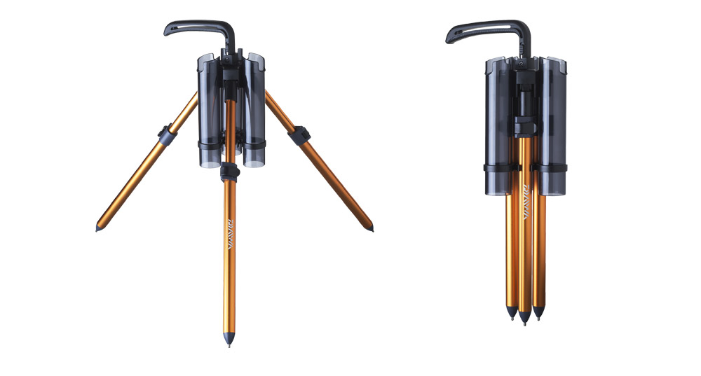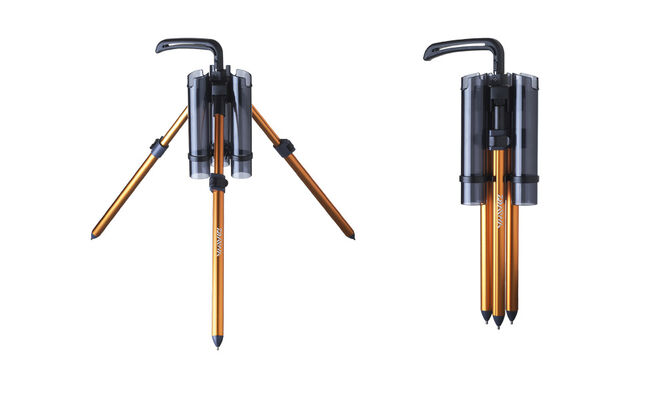 Lehký, kvalitní hliníkový stojan na tři pstruhové pruty. Perfektně se hodí, když je potřeba mít po ruce různé sestavy a chránit tyto rybářské pruty před poškozením při skladování na břehu. Teleskopické nohy jsou nastavitelné v rozmezí délky 39-62cm a lze je individuálně přizpůsobit nerovnému terénu. Stojan lze pomocí příslušenství - přídavného držáku rozšířit na více prutů.