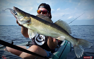 Poslední jezero naší výpravy, dle dostupných informací je zde hojně zastoupený candát. Plni očekávání vyrážíme na vodu, ale měkké dno, placka a mělko neslibovali nic dobrého. Asi po třech kilometrech pádlování narážím na hloubku. Nához střídá nához, když najednou kousek od kajaku dostanu do prutu parádní kopanec! Úsměv od ucha k uchu dává jasně najevo, že budu mít na co vzpomínat.