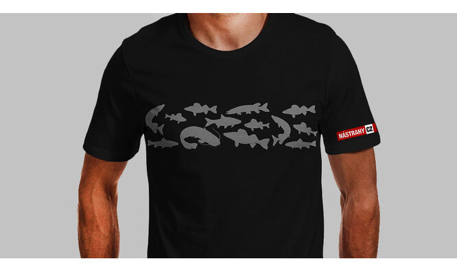 Bavlněné triko NASTRAHY.cz s motivem dravých ryb.