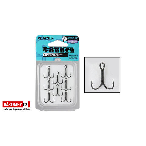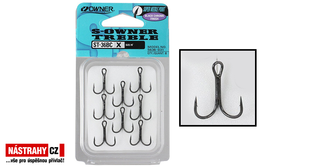 Kvalitní, pevné trojháčky Owner ST-36 s velice ostrým jehlovým hrotem.