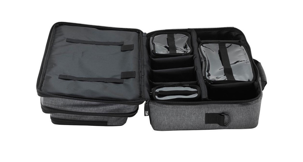 Tato kvalitní taška DAIWA byla speciálně navržena pro potřeby rybářů lovících sumce a oproti předchozí verzi byla vylepšena v mnoha detailech. Robustní šedý polyesterový materiál je vybaven vodoodpudivou funkcí, která zabraňuje okamžitému promočení při krátkých deštích a ve vlhkém prostředí. Dvě velké přední kapsy (26x25cm, 20x25cm) pojmou krabičky na bižuterii atd. Horní hlavní přihrádka je vybavena odnímatelnou deskou EVA Rig board na návazce a vnitřní pevnou horní částí, která zabraňuje proniknutí hrotů háčků do víka. Spodní hlavní přihrádka nabízí obrovský prostor pro různé vybavení, jako jsou navijáky, cívky atd., a lze ji přizpůsobit přesně podle vašich potřeb pomocí vnitřních přepážek. Kromě toho jsou součástí balení tři samostatné malé vnitřní kapsy (30x16x10cm, 18x15x10cm, 15x10x10cm), které poslouží k uložení různých předmětů, jako jsou těžká olova, obratlíky apod. Tím je zajištěn snadný přehled a dobrá organizace všech potřebných sumcových věcí. Vnitřní strana víka je vybavena elastickými popruhy pro uložení a skladování vábniček, dlouhých kleští atd. Pogumované protiskluzové dno je voděodolné a eliminuje nasáknutí vlhkosti z mokré země. Robustní ABS zipy nepodléhají korozi a nabízí vysokou odolnost. Obsahuje polstrovaný nastavitelný ramenní popruh a poutko pro přenášení.
