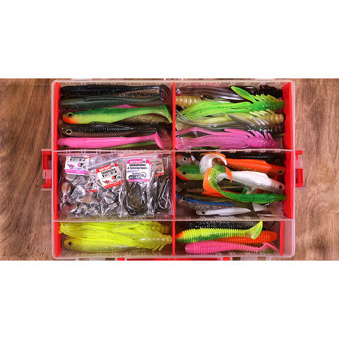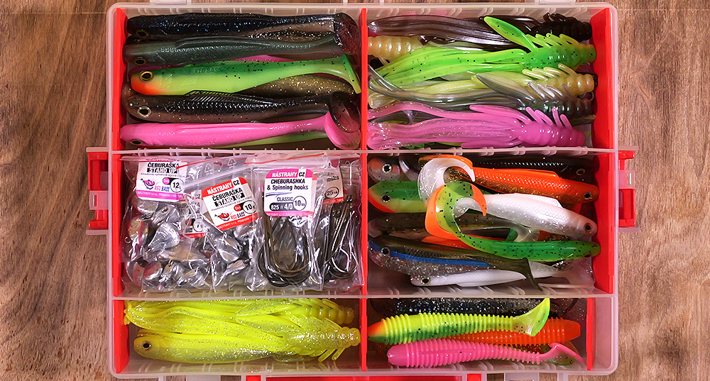 Pečlivě vybraná sada osvědčených nástrah pro lov štik a candátů a k nim odpovídající háčky a čeburašky.