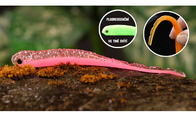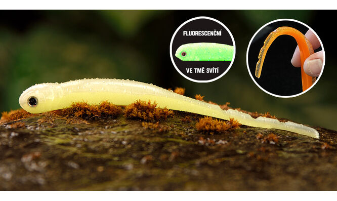 Ručně vyráběný extra měkký špičkový smáček, který ryba jen tak "nevyplivne" a díky použitému mimořádně měkkému materiálu se jej po záběru snaží polknout! Díky propracovaným povrchovým detailům těla (skřelové oblouky, rybí tlama apod.), 3D očím a vyzkoušenému tvaru by měl být nedílnou součástí vaší výbavy.