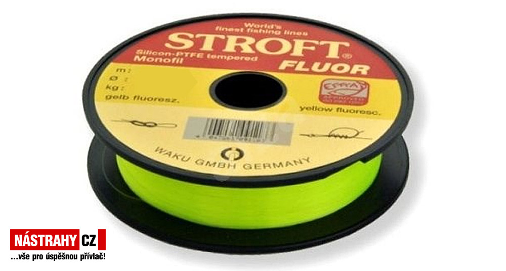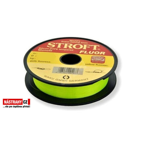 Rybářské vlasce Stroft Fluor, barva žluto - fluorescenční - vlasec vyrobený na základě technologie vlasce STROFT GTM s následným temperováním a nosností, která je jen zřídka dosažena u fluorescenčních vlasců. Přesto se tento vlasec vyznačuje vysokou měkkostí. Doporučuje se všem náročným příznivcům přívlače.