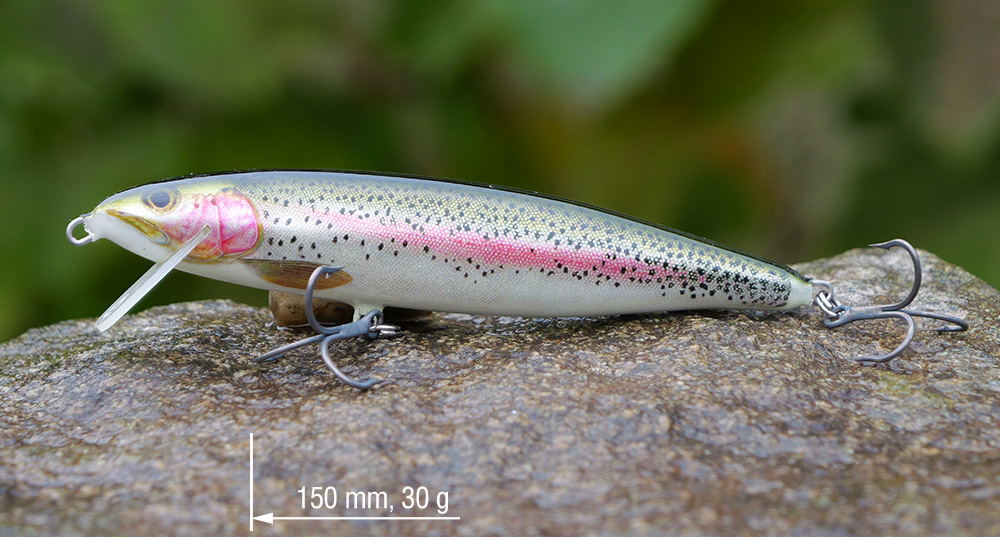 Jde o klasický wobler určený hlavně na říční přívlač větších dravců s hloubkou ponoru 0,2 - 0,8 m. Charakteristický je výraznější akcí s pomalejší frekvencí, takže wobler je ideální pro lov v proudnějších partiích řek. Cílovou rybou je štika a hlavatka, ale protože dobře fungoval také při lovu sumců a candátů, rozhodli jsme se udělat i pár osvědčených barevných kombinací na tyto ryby.