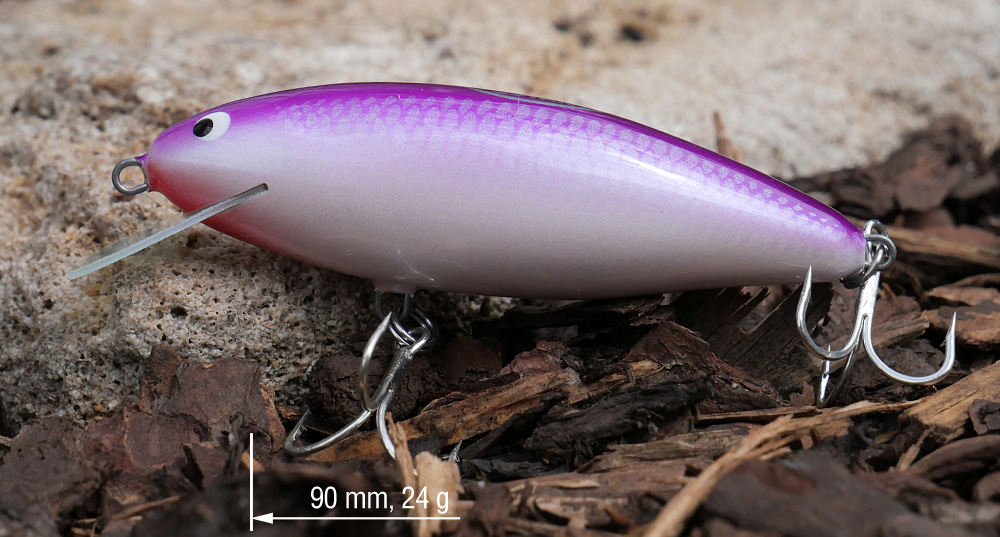 Wobler s výrazným vzhledem je účinný na lov candátů, štik a sumců. Hloubka ponoru: 1,0 - 2,0 m