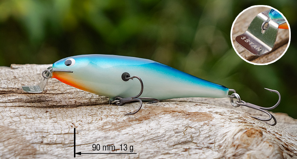 Wobler je účinný na lov candátů, štik, bolenů a sumců. Hloubka ponoru 1,0-1,5 m