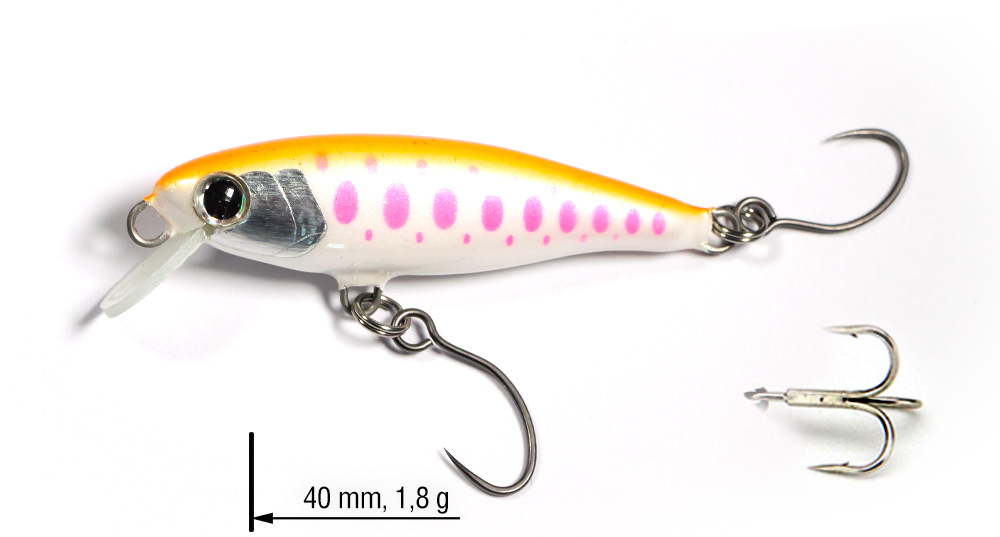 Tento wobler je účinnou zbraní jak do prúdnych úseků, jakož i do pstruhových jam. Vyznačuje se intenzivní prací v proudu. Wobler je účinný na lov pstruha, jelce, parmy.