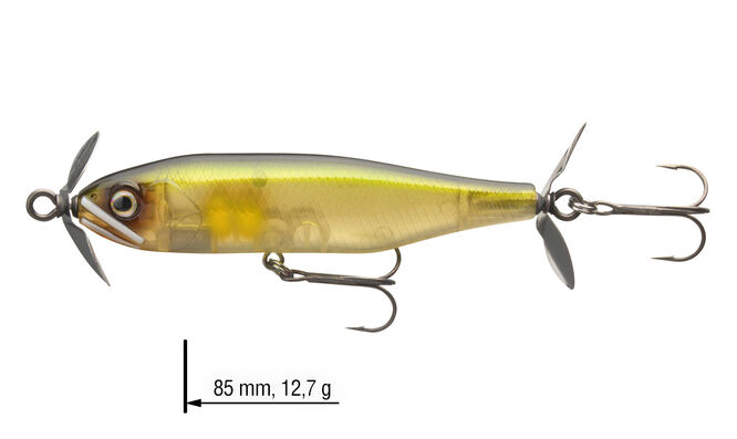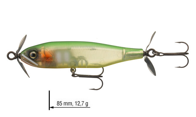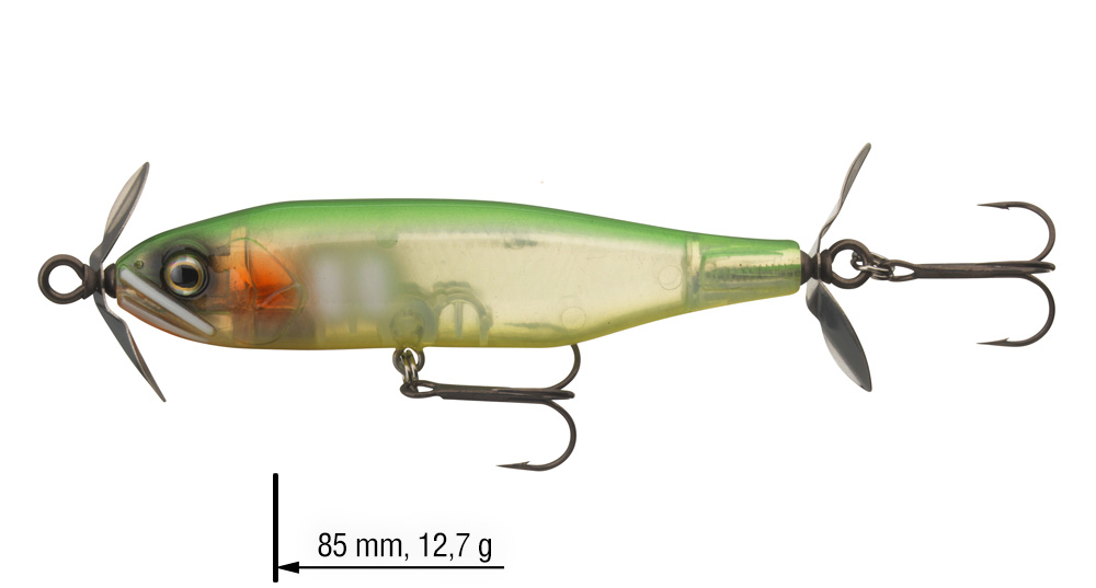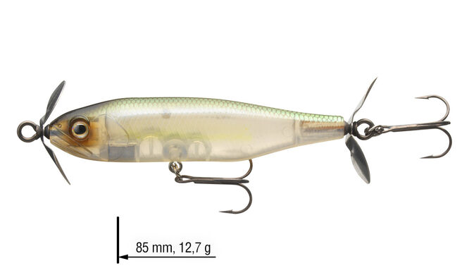 Další japonská legenda z řady Steez, kterou vyvinul Koji Hasegawa v Japonsku. Tato nástraha se dokonale hodí pro skenování velkých vodních ploch pro aktivní lov dravců. Extra lehká vrtule startuje již při nízkých otáčkách – speciální potah SaqSas na objímce navíc podporuje snadné otáčení. Steez Prop lze stahovat konstantní rychlostí a tím přitahuje dravce z téměř všech vodních vrstev. Ideální pro zkoumání podvodní vegetace, úkrytů atd.