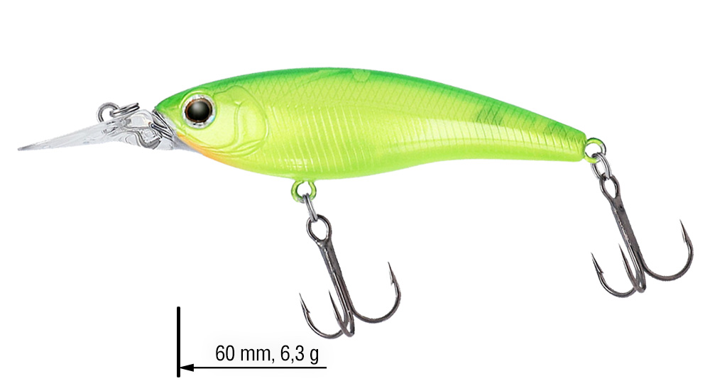 Klasický malý vznášivý wobler ve stylu shadu. Ideální pro cílený lov okounů, candátů a dokonce i pstruhů! Rychlá kývavá akce – vhodná pro velmi pomalou a rychlou prezentaci nástrahy – ideální pro twitching a jerkbaiting. Systém Front- Weight-Oscillation spolu s aerodynamickým tvarem umožňuje enormní nahazovací vzdálenosti.