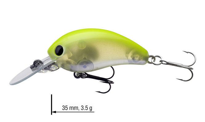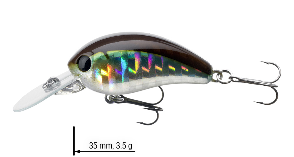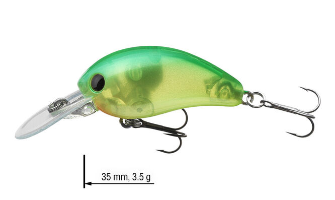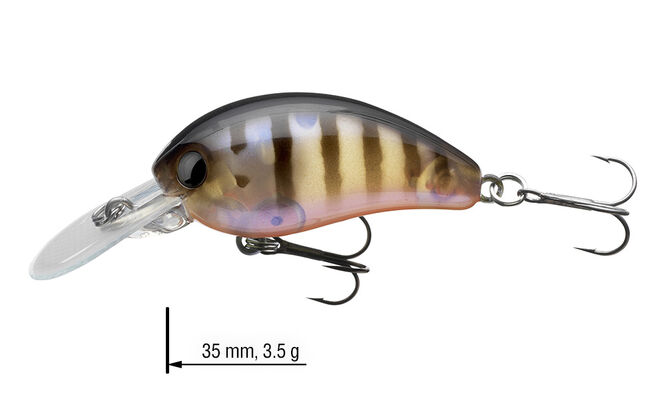 Jedna z našich nejmenších nástrah – 35mm Baby Crank vysílá silné vibrace i při pomalém vedení a pohybuje se viklavou akcí. Úzká potápivá lopatka je vyrobena z robustního pastu a napomáhá rychlému dosažení hloubky. Zejména okouny přivádí k šílenství, když se nástraha pohybuje různými způsoby. Tato plovoucí nástraha je velmi vhodná k prezentaci pod převislými keři a stromy za účelem lovu pstruhů.