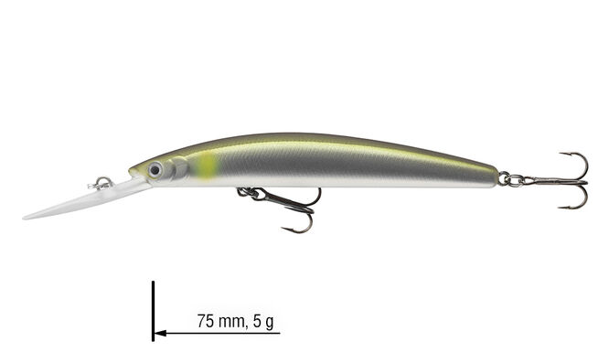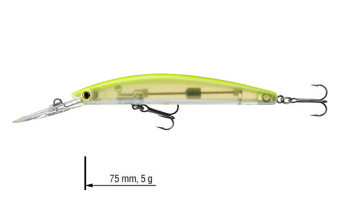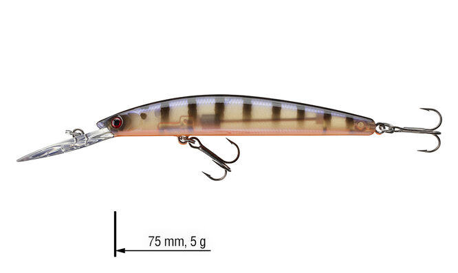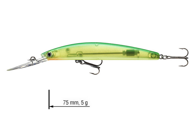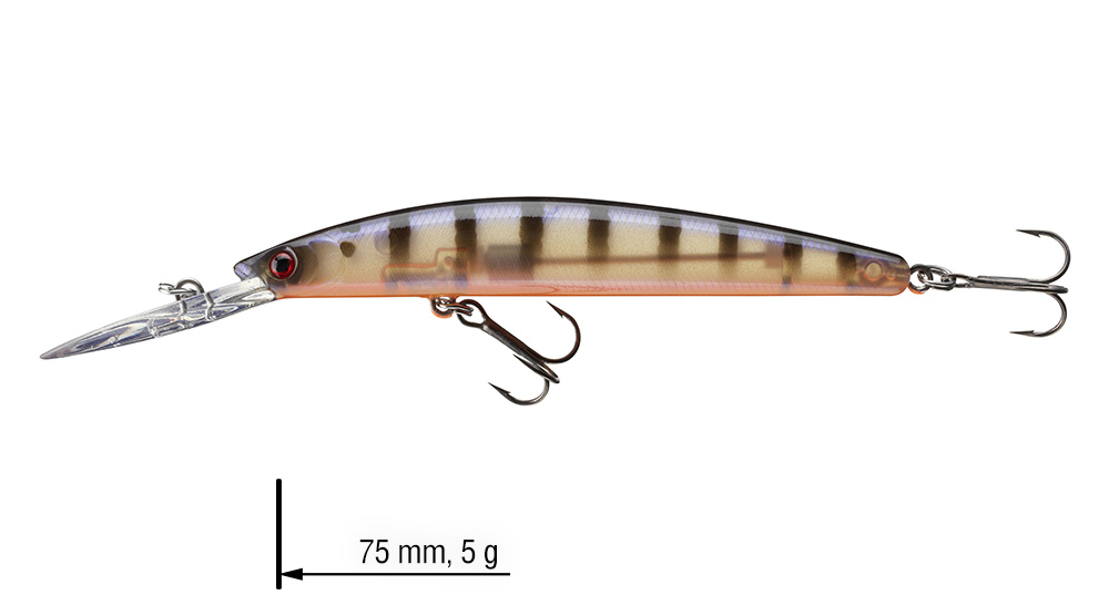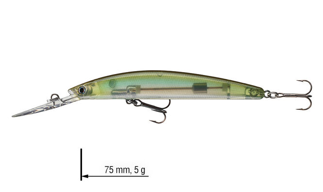 Tournament Double Clutch 75 je jednou z nejúspěšnějších nástrah v Japonsku, která si již mnohokrát na své konto připsala výjimečné úlovky. Během testování v Německu jsme s touto nástrahou chytili štiky a okouny i při jednoduchém stahování. Svým štíhlým tvarem těla perfektně imituje kořist, jako jsou například oukleje. Double Clutch je vznášivá nástraha a jakmile se dostane do hloubky, dá se s ní lovit skoro na místě. Její kolébavá akce je vhodná na techniky, jako jsou twitching a jerking.