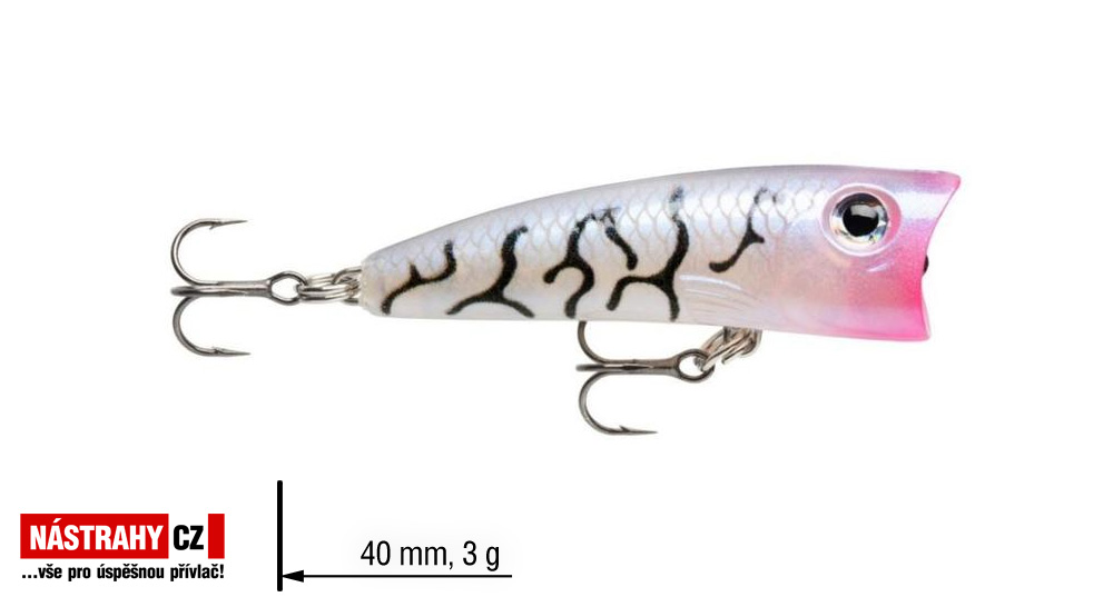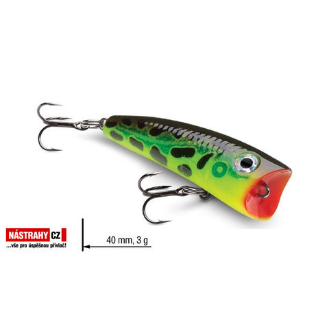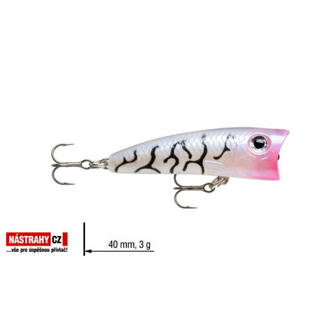 Malá hladinová nástraha s hlasitými zvukovými projevy. Speciálně tvarovaná miska v hlavě nástrahy vytváří objemné vzduchové bubliny a hlasité zvuky při každém škubnutí prutem. Navíc je vybavena vnitřním hlasitým chrastítkem. Vykazuje nevyzpytatelnou akci vylekané rybky, která prchá před dravcem. Tento malý popper určitě stojí za vyzkoušení!