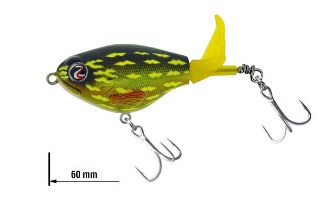 River2Sea Whopper Plopper je velice úspěšná povrchová nástraha, která vydává nízkofrekvenční vibrace lákající dravce v okolí. V zadní části Whopper Plopperu je malý propeler, který i při velice pomalém tažení čeří vodu a nechává za sebou výraznou zvukovou i vizuální stopu.