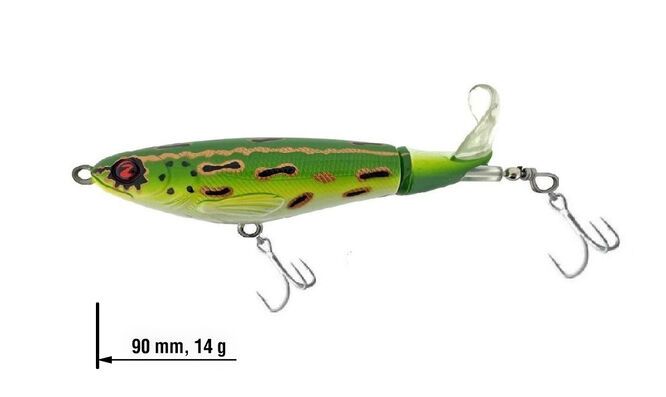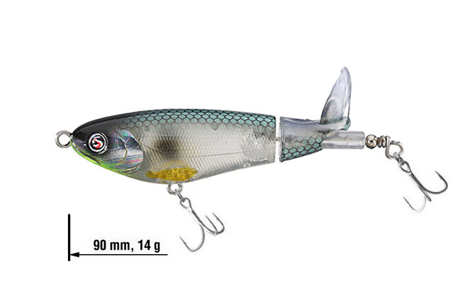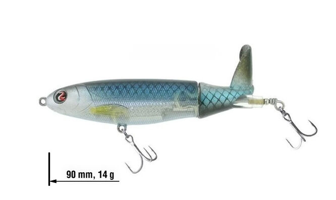 River2Sea Whopper Plopper je velice úspěšná povrchová nástraha, která vydává nízkofrekvenční vibrace lákající dravce v okolí. V zadní části Whopper Plopperu je malý propeler, který i při velice pomalém tažení čeří vodu a nechává za sebou výraznou zvukovou i vizuální stopu.