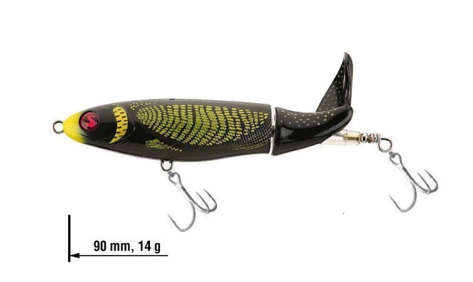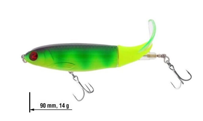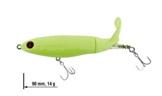 Můžete jej táhnout pomalu, rychle, pozastavit, či rychleji a nepravidelně popotahovat. Největších úspěchů a vyprovokovaných záběrů jsme však měli při plynulém a pomalém přitahovaní. Přitahujte Whopper tak, aby se lopatka točila a stále plopala konstantní rychlostí. Veškeré varianty Whopper Plopper jsou již osazeny kvalitními X-Strong trojháčky.