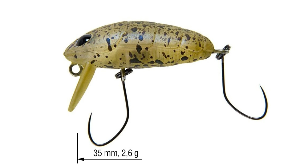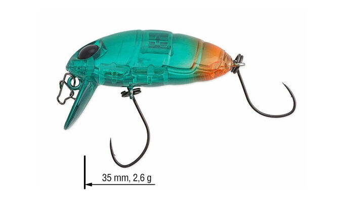 Nories CRANKIN PUPA SHALLOW je jedinečný wobbler od značky Nories. Je navržen pro použití od hladiny až po střední vrstvy vody. Obsahuje speciální „backroll závaží“ umístěné ve středu zad, které umožňuje extrémně pomalé vedení. Zvuk při dopadu na hladinu je o něco hlasitější, což je pro pstruhy velice atraktivní.