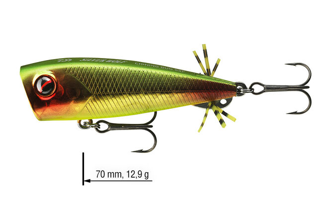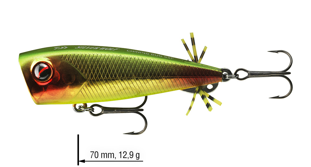 Extra malý plovoucí popper na okouny a boleny s jedinečnou možností přizpůsobení. Díky svému kompaktnímu tvaru a konstrukci dosahuje Prorex Chining Bug dlouhých nahazovacích vzdáleností a vyvolává vynikající frekvenci záběru zejména technikou „walk-the-dog“. Malé tělo v kombinaci se silikonovými nožkami v zadní části vytváří siluetu brouka, která provokuje dravce k záběru. Integrovaný systém „3-Eye“ v zadní části umožňuje dodatečné použití silikonových suknic a přizpůsobení těžiště změnou umístění zadního trojháčku do 3 různých poloh. Perfektně se tak přizpůsobí jak na klidné, tak na proudné vodě.