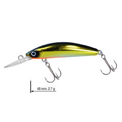 Vznášivý mělce potápivý wobler. Rozměry: 4,8 cm Hloubka ponoru: 1,3 m