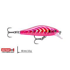 Potápivý wobler pro dlouhé hody. Ponor 0,9 - 1,2 m. Rozměry: 50 mm, 5,5 g.