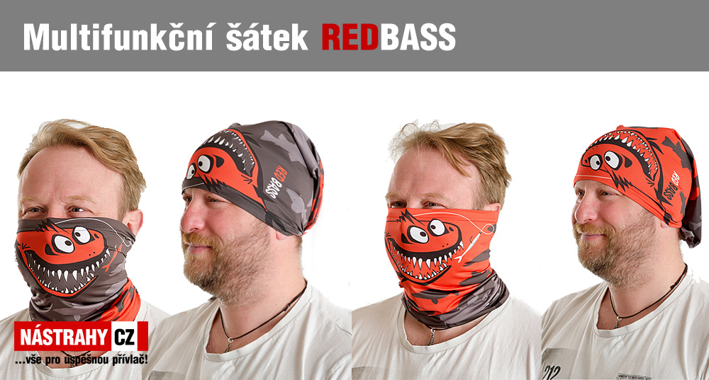 Hřejivý zimní multifunkční šátek REDBASS pro použití jako nákrčník, šátek, rouška, čelenka apod. Je vyrobený ze zhruba dvojnásobně silného hřejivého materiálu. Z jedné strany je motiv na červeném podkladu a z druhé na tmavě šedém. Rybář si tak může zvolit, jakou barvu bude mít na ústech/hlavě. Lemy jsou zašité, nehrozí samovolné "rolování".