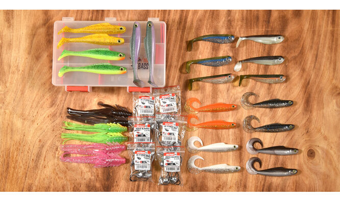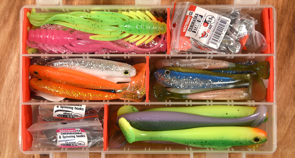 Pečlivě vybraná sada osvědčených nástrah pro lov štik a candátů a odpovídající jigy nebo čeburašky.
