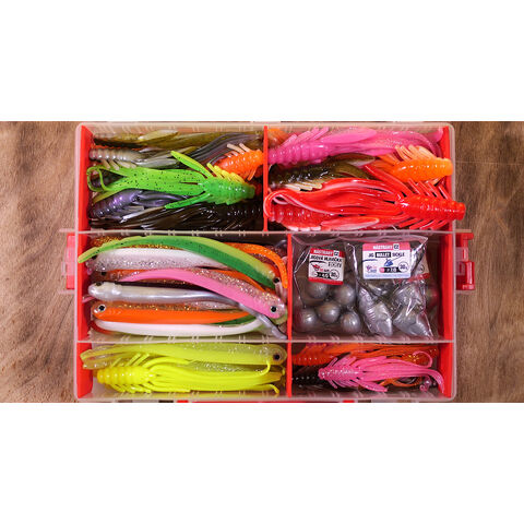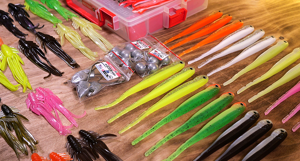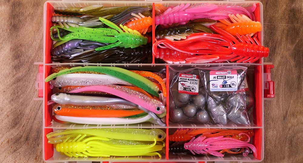 Pečlivě vybraná sada osvědčených nástrah nejen pro vertikální lov candáta a k nim jigovky vč. krabičky.