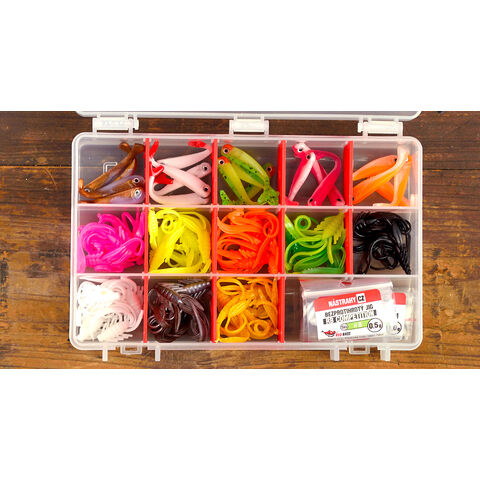 NOVINKA 2022: Pečlivě vybraná sada osvědčených nástrah pro lov na dírkách vč. krabičky a jigovek.