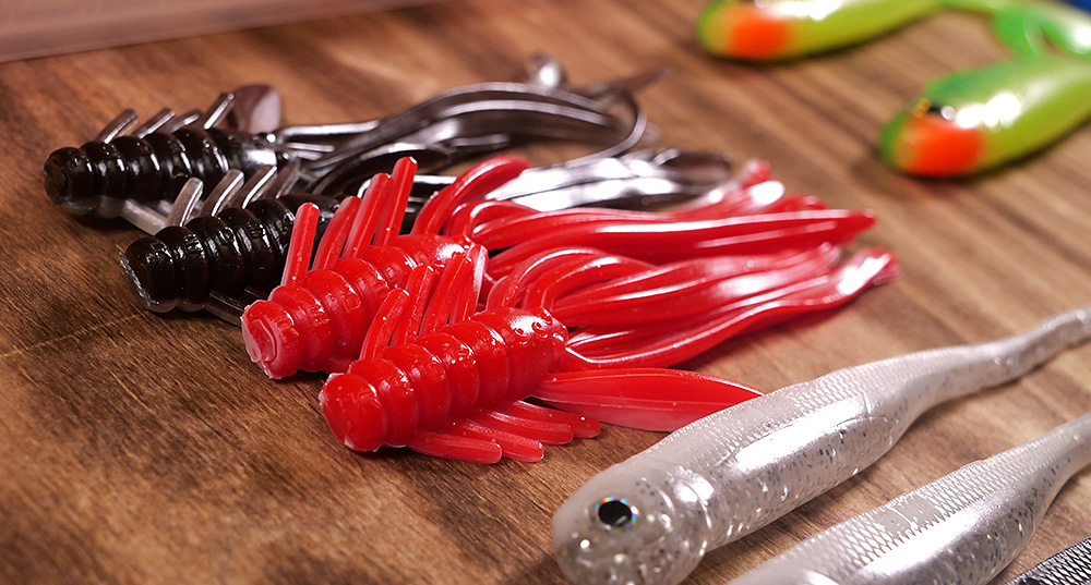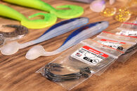 Pečlivě vybraná sada osvědčených nástrah pro lov štik a k nim odpovídající jigové hlavičky.