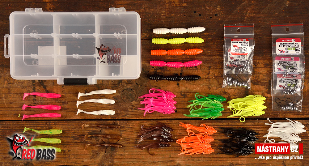 Pečlivě vybraná sada osvědčených nástrah pro lov pstruhů duhových, sivenů a k nim jigové háčky.