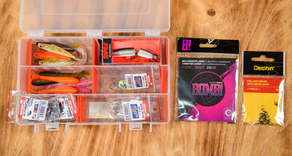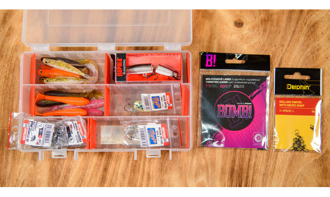 17 nástrah, 15 jigovek, 1 wobler, 2 rotačky a 2 wolframové lanka.