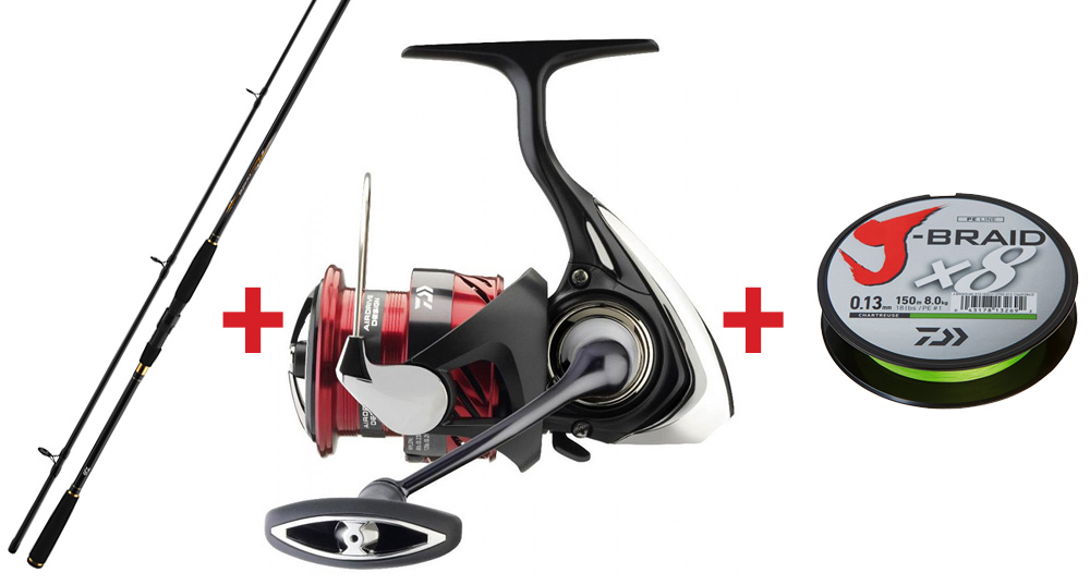 Kvalitní prut Daiwa Crossfire Sea Trout 3,00 m, 10 - 30 g, naviják Daiwa 23 Ninja LT 5000-C + kvalitní japonská osmivláknová šňůra Daiwa J-BRAID Expedition.